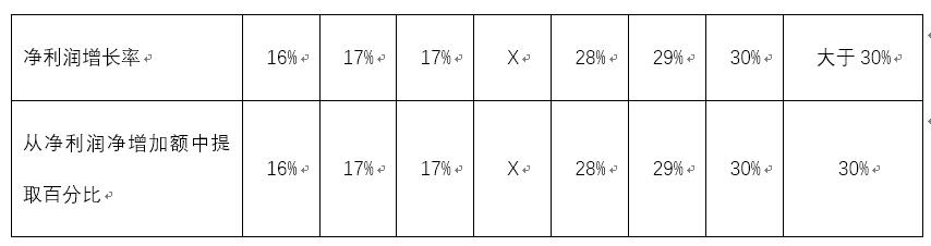 表2-1 年度股權(quán)激勵(lì)基金提取比例表