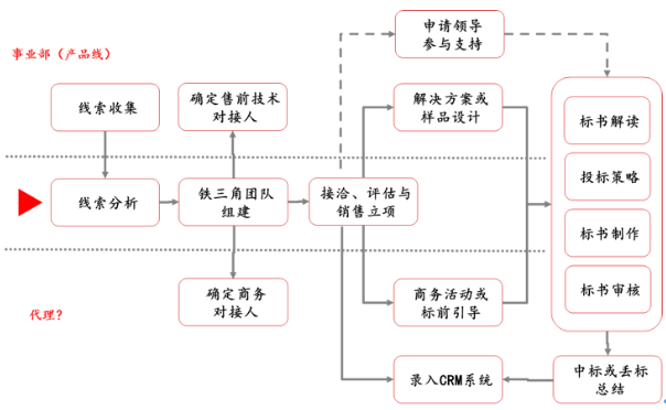 針對個細分模塊,建立基于市場的流程運行邏輯,如單一項目線索跟進與成交的業(yè)務運作邏輯如下: