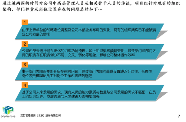 項目啟動之初,通過內(nèi)部資料研究、企業(yè)深度訪談、外部標(biāo)桿資料對比,政策研究等維度進(jìn)行全面分析,發(fā)現(xiàn)問題并提出改進(jìn)的意見。