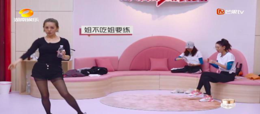 情景8:吳昕學(xué)舞蹈有點(diǎn)崩潰,坐在后面生氣,藍(lán)盈瑩(隊(duì)長)以為是累了,過去捏背,好讓她清醒。黃齡情緒不對,都不說話了,藍(lán)盈瑩絲毫沒有察覺。在這個團(tuán)隊(duì)里,好像每時每刻都處在一個高壓的狀態(tài)下,神經(jīng)緊繃,有點(diǎn)窒息。