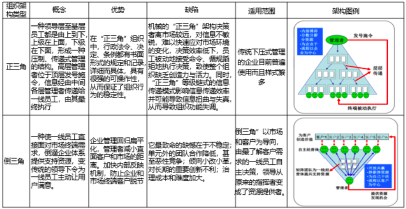 現(xiàn)代的組織架構(gòu)變革呈現(xiàn)四大趨勢:扁平化、柔性化、網(wǎng)絡(luò)化、虛擬化,企業(yè)在組織架構(gòu)創(chuàng)新方面有很多嘗試,大部分的調(diào)整都契合了市場競爭和市場環(huán)境的變化和需求,取得了良好效果。但隨時間的推移都有其局限性,因此不斷的創(chuàng)新優(yōu)化是保持活力的源泉。在信息傳輸技術(shù)迅猛發(fā)展和經(jīng)濟(jì)全球化的背景下,市場環(huán)境瞬息萬變,消費者需求呈現(xiàn)出“碎片化”的特點,消費者行為和需求的不確定性越來越高,于是更接近客戶和市場的“倒三角”組織架構(gòu)應(yīng)運而生。