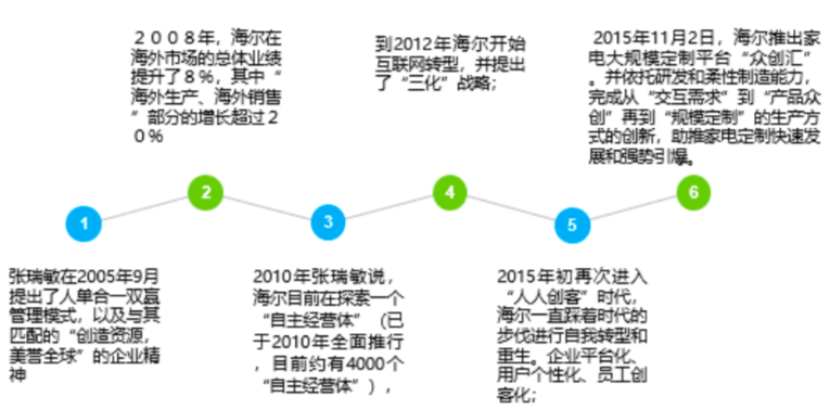 海爾集團(tuán)人單合一組織模式的發(fā)展進(jìn)程: