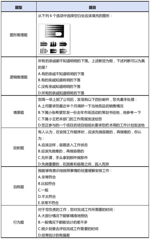 簡單來說,流體能力與人的先天素質(zhì)有很大的關(guān)系,晶體能力與人的后天學(xué)習(xí)有很大的關(guān)系。流體能力主要通過圖形推理題、空間想象題、邏輯推理題等題目進(jìn)行考察,而晶體智力主要通過情景題、自陳題、投射題、行為題等題型進(jìn)行考察。