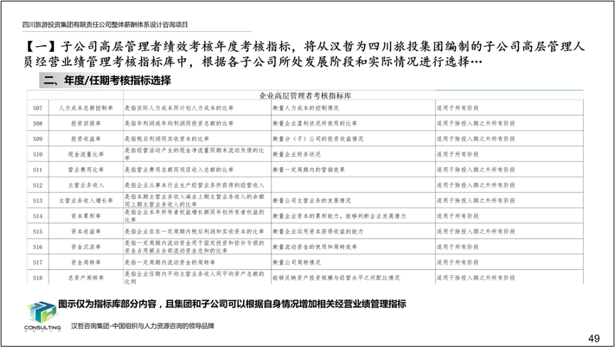 2、優(yōu)化子公司高層領(lǐng)導(dǎo)班子經(jīng)營業(yè)績考核辦法。根據(jù)各子公司的行業(yè)特點(diǎn)、業(yè)務(wù)定位和所處發(fā)展階段,擬定了子公司高層領(lǐng)導(dǎo)班子經(jīng)營業(yè)績考核指標(biāo)庫,以及相應(yīng)的指標(biāo)選擇方法和權(quán)重測算方法,確??己酥笜?biāo)符合子公司所處發(fā)展階段,提高激勵作用,保障集團(tuán)戰(zhàn)略目標(biāo)的實(shí)現(xiàn)。