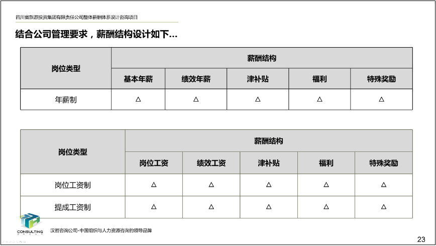 3、優(yōu)化薪酬檔位確定模式。根據(jù)集團(tuán)崗位特點(diǎn)、市場化需要以及職業(yè)發(fā)展通道的再構(gòu)建,加強(qiáng)外部環(huán)境、內(nèi)部變化和個人能力在薪酬中的體現(xiàn),明確薪酬檔位的調(diào)整模式,促進(jìn)員工能力的自我提升,從而增強(qiáng)企業(yè)的市場化競爭力。