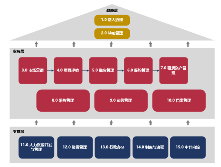搭建分類流程體系框架,梳理流程總圖,確保最終的流程體系能夠支撐公司業(yè)務(wù)發(fā)展。