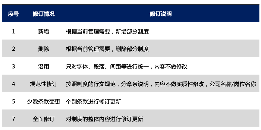 項目組同時對公司所有的制度進行評估、修訂、完善,確保公司當前所有的制度符合公司管理實際。