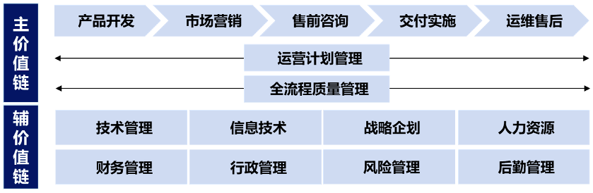 例如:針對軟件企業(yè),參見上圖,筆者勾勒出了企業(yè)價值鏈核心細分環(huán)節(jié),企業(yè)可以初步將上述每個價值鏈環(huán)節(jié)均作為一個序列進行設置,之后再詳細參考下文所提到的崗位戰(zhàn)略重要性、人才培養(yǎng)理念、崗位任職人員規(guī)模等因素對序列劃分結(jié)果進一步做出調(diào)整。