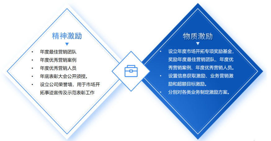 2.物質(zhì)激勵(lì)方面,設(shè)置簽訂獎(jiǎng)、營(yíng)銷(xiāo)獎(jiǎng)、超額利潤(rùn)獎(jiǎng)和業(yè)績(jī)目標(biāo)獎(jiǎng),對(duì)不同類(lèi)型業(yè)務(wù)分別設(shè)置激勵(lì)方案。