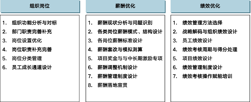 本次項(xiàng)目初步滿足了客戶需求,明確了工作職責(zé)、績(jī)效評(píng)價(jià)指標(biāo)和標(biāo)準(zhǔn),并配套建立了薪酬激勵(lì)規(guī)則。