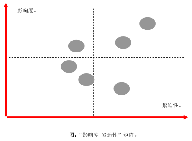 根據(jù)“影響度-緊迫性”矩陣進行排序后,每個問題都應被劃歸到四個象限之中,不同類型問題的解決順序如下: