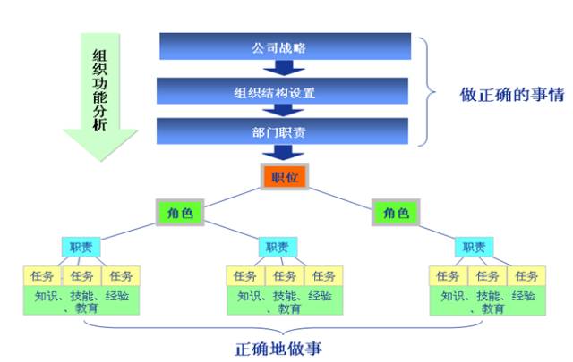 - 部門(mén)職責(zé)承接戰(zhàn)略要求;崗位設(shè)置與職責(zé)分配向上承接部門(mén)職責(zé);打通了戰(zhàn)略到崗位的分解路徑;