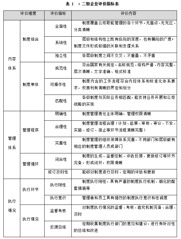 經(jīng)研究,本次評估內(nèi)容包括制度內(nèi)容評估、制度管理體系評估、制度執(zhí)行情況評估三個方面,為此設計評價指標15個指標,對應評價的15個要素。