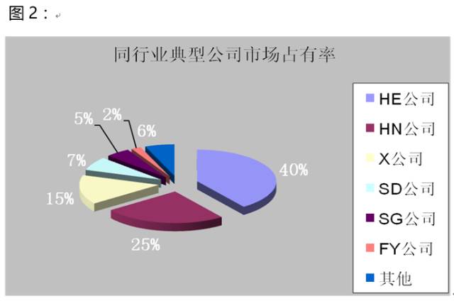 X公司所在行業(yè),國(guó)內(nèi)同行業(yè)的對(duì)手大致可以分為三大陣營(yíng),一是外資企業(yè),二是大型國(guó)有企業(yè),三是民營(yíng)企業(yè),下圖就列舉了這三類(lèi)企業(yè)中的代表公司的市場(chǎng)占有率,X公司在行業(yè)中處于第三位,在他之前的兩大公司都是大型外資企業(yè),這說(shuō)明X公司的市場(chǎng)份額尚可,但要挑戰(zhàn)前兩者,還有一定的差距和難度。