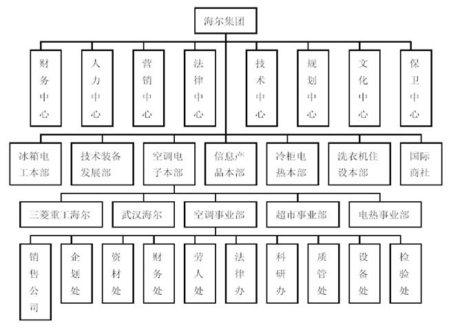 根據(jù)國(guó)際化的發(fā)展思路,海爾集團(tuán)對(duì)原來(lái)的事業(yè)本部制組織機(jī)構(gòu)進(jìn)行了戰(zhàn)略性調(diào)整,把原來(lái)分屬于每個(gè)事業(yè)部的財(cái)務(wù)、采購(gòu)、銷售業(yè)務(wù)全部分離出來(lái),整合成獨(dú)立經(jīng)營(yíng)的商流推進(jìn)本部、物流推進(jìn)本部、資金流推進(jìn)本部,實(shí)行全集團(tuán)范圍內(nèi)統(tǒng)一營(yíng)銷、統(tǒng)一采購(gòu)、統(tǒng)一結(jié)算;把原來(lái)的職能管理資源如人力資源開(kāi)發(fā)、技術(shù)質(zhì)量管理、信息管理、設(shè)備管理、法律、保衛(wèi)等進(jìn)行整合,把上述職能部門從各個(gè)事業(yè)本部分離出來(lái),以集團(tuán)的職能中心為主體,注冊(cè)成立獨(dú)立經(jīng)營(yíng)的服務(wù)公司;最后,把這些專業(yè)化的“事業(yè)體”通過(guò)“市場(chǎng)鏈”連接起來(lái),設(shè)計(jì)索酬、索賠、跳閘標(biāo)準(zhǔn)。