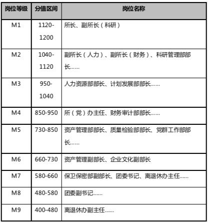 表:L研究所職能機(jī)關(guān)崗位等級(jí)劃分