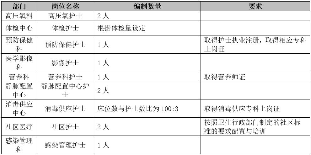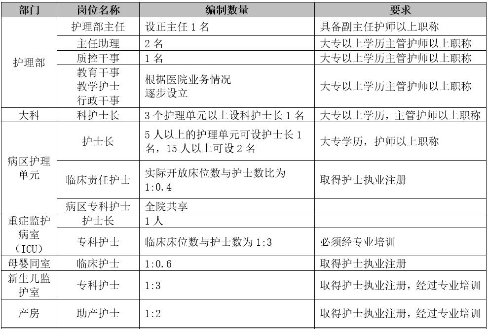 1、一般臨床科室、門診、醫(yī)療輔助科室等護理崗位的設(shè)置:以初級職稱為主,原則上不設(shè)中、高級職稱崗位。