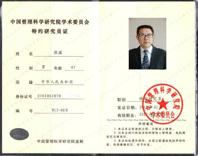 經(jīng)有關(guān)部門(mén)推薦,鑒于漢哲咨詢(xún)總裁段磊博士在管理咨詢(xún)領(lǐng)域內(nèi)的學(xué)術(shù)研究造詣,特聘請(qǐng)段磊博士任中國(guó)管理科學(xué)研究院特約研究員,參與管理科學(xué)相關(guān)領(lǐng)域的研究和成果評(píng)審工作。