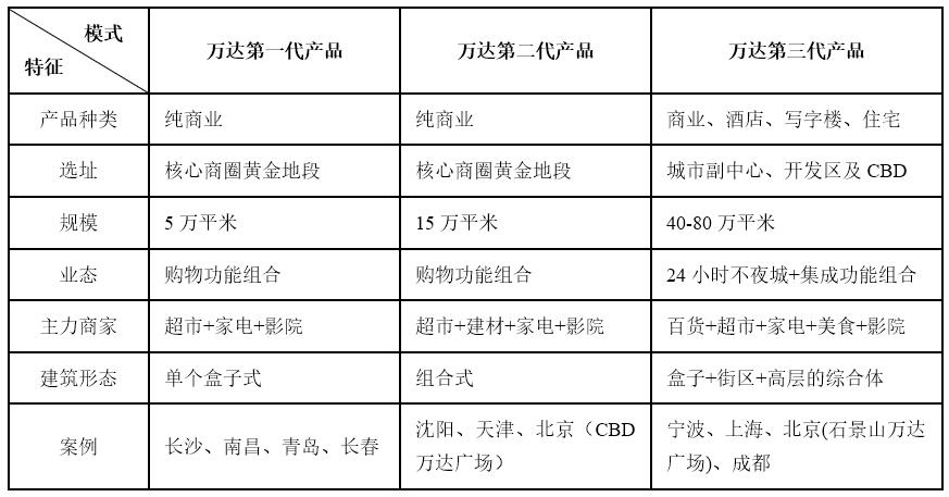 表:萬達(dá)產(chǎn)品線圖解